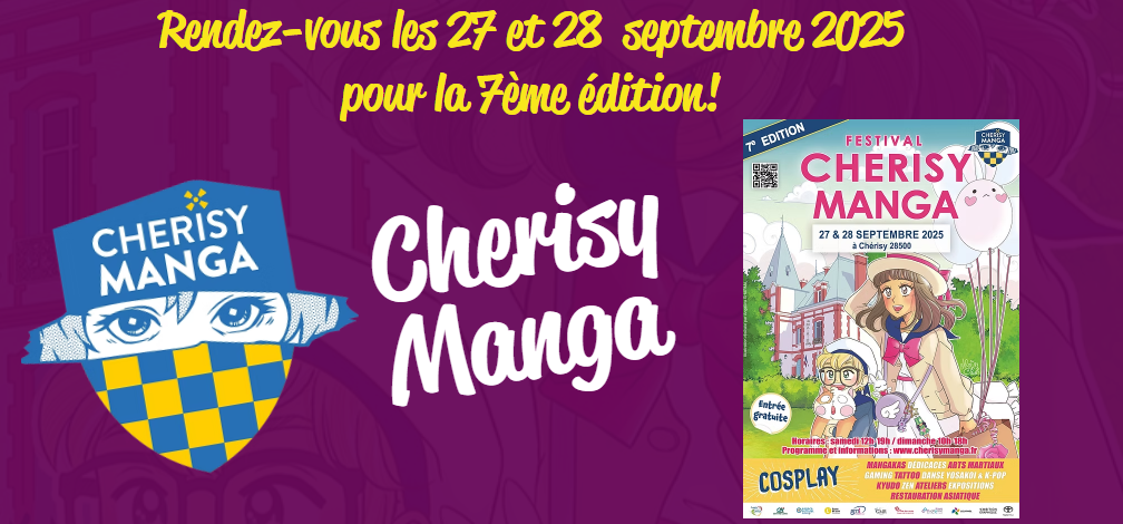 Le festival Chérisy Manga fait son grand retour les 27 et 28 septembre 2025 pour sa 7ᵉ édition, dans le petit village de Chérisy (Île-de-France). Gratuit, grand public, festif, foisonnant d’idées : voici un rendez-vous à ne pas manquer pour tous les passionnés de manga, mais aussi pour celles et ceux qui veulent découvrir les métiers de la filière graphique.